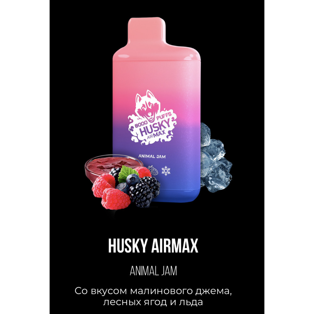 • Электронная сигарета Хаски Аир Макс Малиновый Джем Лесные Ягоды со Льдом (Husky Airmax Animal Jam)